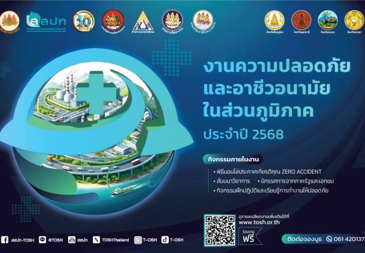 สถาบันส่งเสริมความปลอดภัย อาชีวอนามัย และสภาพแวดล้อมในการทำงาน (องค์การมหาชน) ร่วมกับภาคีเครือข่ายด้านความปลอดภัย กำหนดจัดงานความปลอดภัยและอาชีวอนามัยในส่วนภูมิภาค ประจำปี 2568 จำนวน 4 ภาค เพื่อให้นายจ้าง ลูกจ้าง ผู้ที่เกี่ยวข้องทั้งภาครัฐ และภาคเอกชน ตระหนักถึงความสำคัญในเรื่องความปลอดภัย อาชีวอนามัย และสภาพแวดล้อมในการทำงาน รวมทั้งเพื่อพัฒนาศักยภาพบุคลากรด้านความปลอดภัยในการทำงานของสถานประกอบกิจการ ภายใต้แนวคิด ร่วมสร้างวัฒนธรรมไทยเชิงป้องกัน สู่ความปลอดภัย อาชีวอนามัย และความผาสุกที่ยั่งยืน (Forward Culture of Prevention for Safety Thailand) โดยงานดังกล่าวจัดให้มีการสัมมนาวิชาการ การแสดงนิทรรศการจากภาครัฐและเอกชน กิจกรรมแลกเปลี่ยนเรียนรู้ด้านความปลอดภัย เพื่อเสริมสร้างการพัฒนาองค์ความรู้และประสบการณ์ทางวิชาการให้กับผู้เข้าร่วมงาน