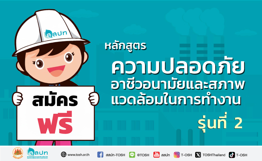 [สมัครฟรี] หลักสูตรความปลอดภัย อาชีวอนามัย และสภาพแวดล้อมในการทำงาน รุ่นที่ 2 [สมัครฟรี] หลักสูตรความปลอดภัย อาชีวอนามัย และสภาพแวดล้อมในการทำงาน รุ่นที่ 2 สัมมนาวันที่ 14 มกราคม 2569 เวลา : 08.30-16.00 น. สถานที่อบรม : โรงแรมอินโดจีน จังหวัดสระแก้ว จ.สระแก้ว สมัครอบรมได้ที่เว็บไซต์ สสปท. https://www.tosh.or.th/…/tos…/tosh-promote/1331-021068-2